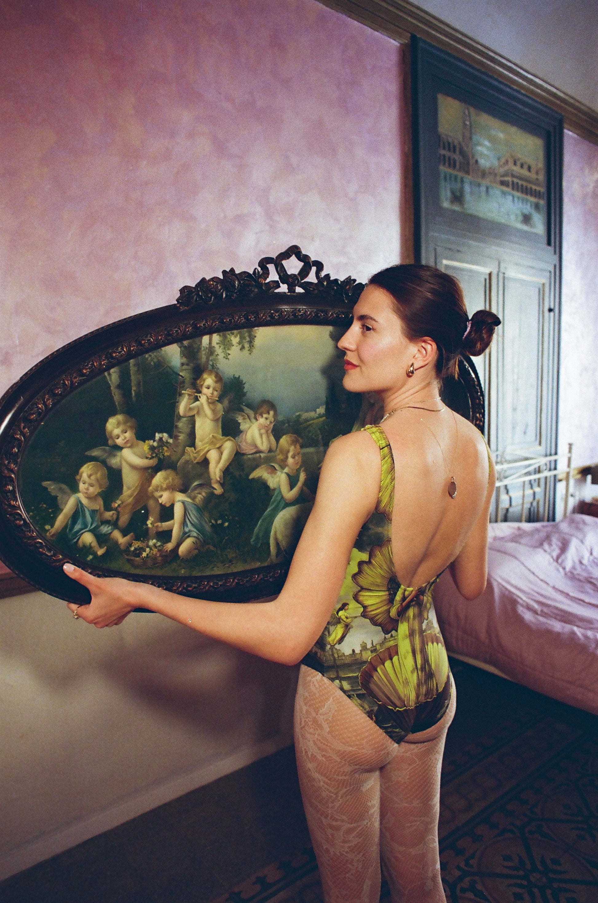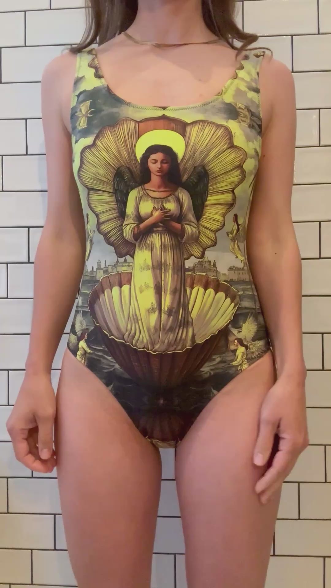 An icon in her own right, the Blessed Shell Woman Pool Swimsuit is designed for poolside glamour and unforgettable holiday moments. Crafted in soft golds with palm motifs, this swimsuit frames the figure like a goddess sculpture — elegant, bold, and perfectly made for the water.