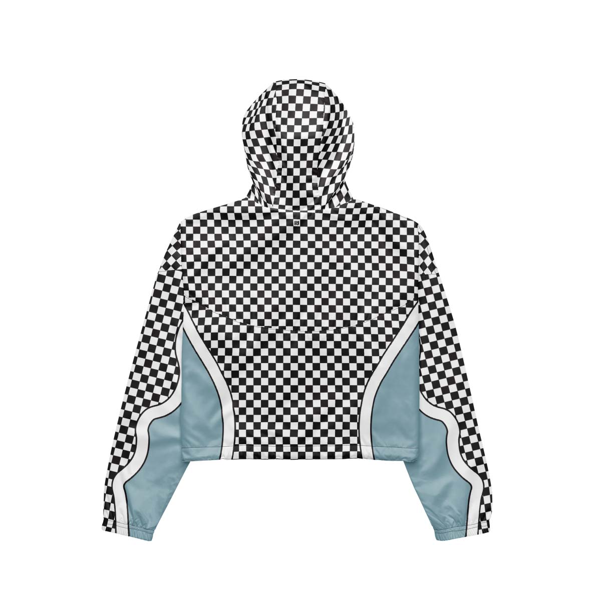 Step up your streetwear game with this cropped windbreaker — a bold blend of function and fashion. Designed with an eye-catching black-and-white checkerboard pattern and soft blue curved panels, it delivers lightweight protection with a modern, athletic edge. The adjustable hood and drawstring hem allow a personalized fit, while the cropped cut adds a fresh, confident silhouette perfect for layering.